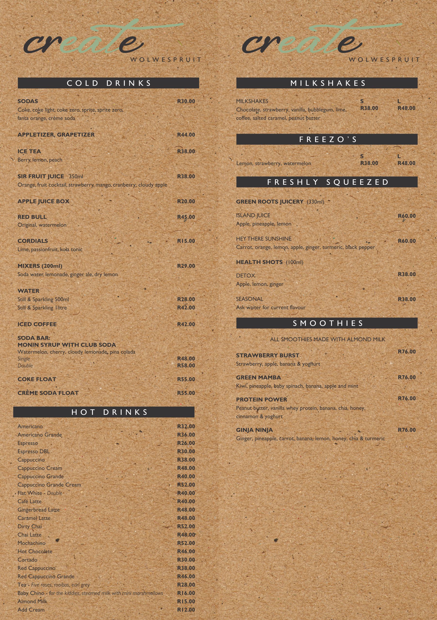 Cooldrinks and Coffee Menu